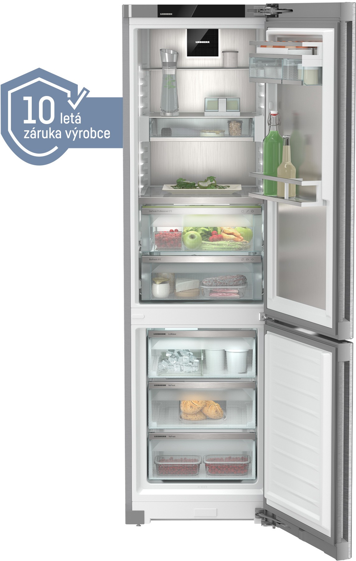 Chladnička s mrazničkou – energetická trieda B, objem chladničky 259 l, objem mrazničky 104 l, 4 police, doprava, displej, LED osvetlenie a ventilácia, nulová zóna, no Frost, rozmery 201,5 × 59,7 × 67,5 cm (V׊×H) Kombinovaná chladnička Liebherr CBNstb 579i vám ponúkne dostatočný vnútorný objem na uchovanie všetkých vašich obľúbených potravín. Chladiaca časť s objemom 259 litrov a mraziaca časť s
