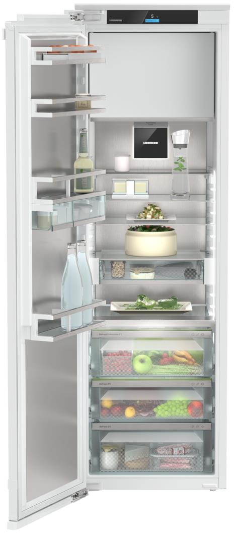 Vstavaná chladnička – s mrazničkou, energetická trieda C, objem chladničky 250 l, objem mrazničky 27 l, doľava, 9 políc, 1 priehradka v mrazničke, 1 chladiaci okruh, smart funkcie, rozmery 177 × 55,9 × 54,6 cm (V׊×H), čelný dekoratívny panel na dvierkach nie je súčasťou dodávky Vstavaná chladnička LIEBHERR IRBAc 5171 – 617 s pevnými dverami a 115° uhlom pre otvorenie dverí. Chladnička s celkovým objemom 276 litrov aenergetickou triedou C sa pýši ročnou spotrebou 131 kWh. Chl