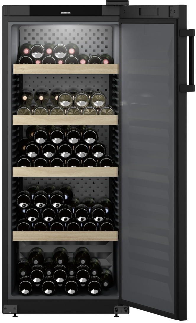 Vínotéka – energetická trieda E, na 166 fliaš, vnútorný objem 322 l, 1 zóna chladenia, 5 políc, vo výbave varovný signál pri poruche, alarm otvorených dverí a detský zámok, displej a osvetlenie, dotykové ovládanie, nastaviteľná teplota od 5 do 20 °C, hlučnosť 38 dB, pravé otváranie, rozmery 148,4 × 59,7 × 76,3 cm (V׊×H), hmotnosť 58,7 kg, čierna farba Vinotéka LIEBHERR WSbl 4601 v elegantnom čiernom vyhotovení patrí medzi temperované chladničky radu GrandCru. Ponúka vnútorný objem 322 litrov, päť drevených políc a kapacitu až pre 166 fliaš vína s o
