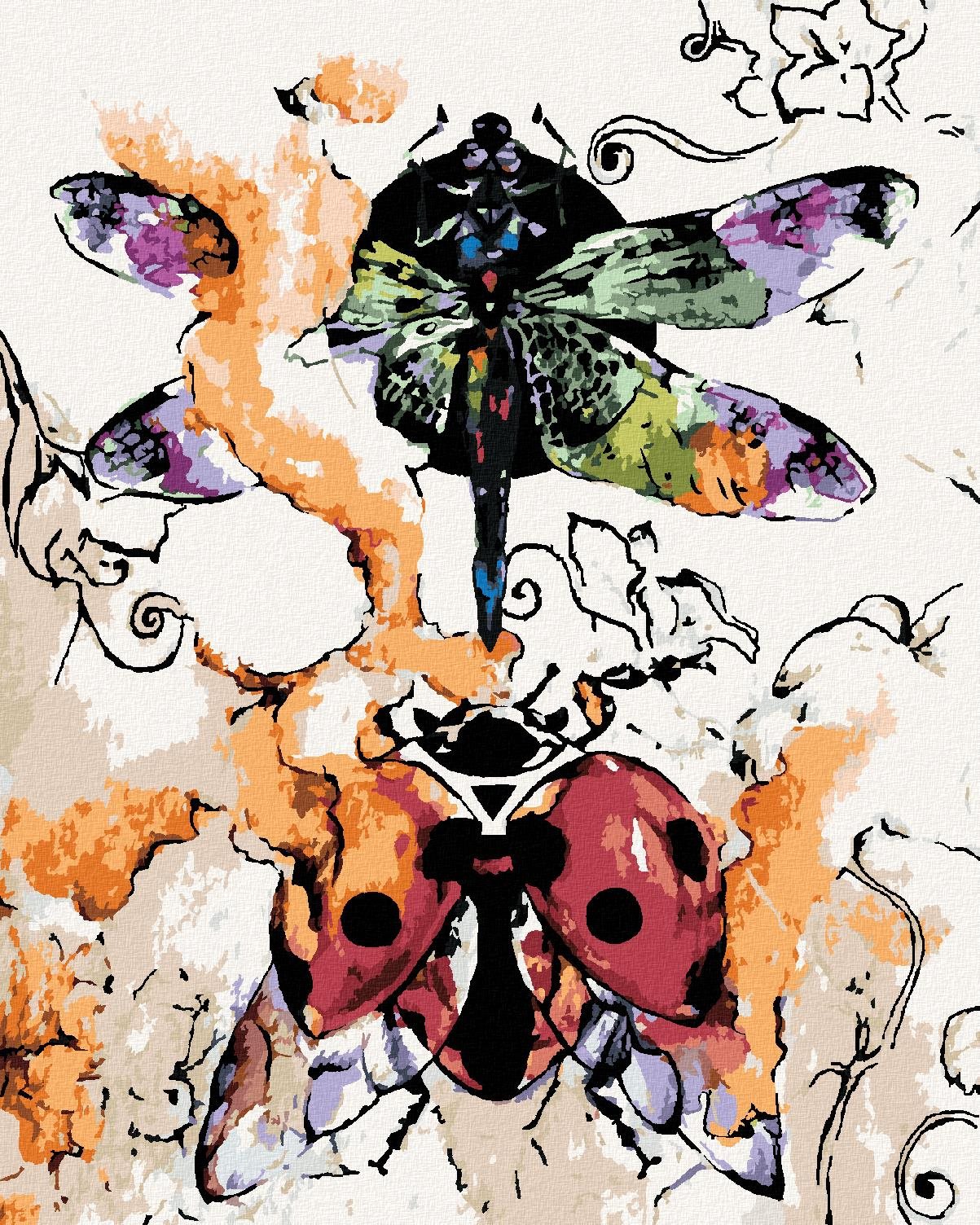 Maľovanie podľa čísel – tematika zvieratá, stredná náročnosť, plátno, súprava štetcov, farby a vymaľovaný vzor súčasťou balenia, s rámom a s napnutím plátna, rozmery 50 × 40 cm (V׊) Kľúčové vlastnosti maľovania podľa čísiel Lienka s vážkou, 40 × 50 cm, plátno napnuté na rám Maľovanie podľa čísel si zamilujú tvoriví jedinci Materiálom plátna je drevo a ľan Rozmery obrazov podľa čí
