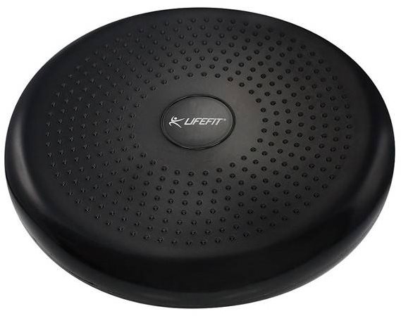 Balančný vankúš – plastový, masážny, nafukovací, obojstranný, rehabilitačný, max. nosnosť 180 kg, šírka 33 cm, priemer 33 cm, čierna farba Balančný vankúšik Lifefit Balance cushion v tvare šošovky je vhodným doplnkom na masáž pri dlhodobom sedení. Pôsobí proti bolesti chrbta, precvičí stabilizačné svaly aj vzpriamovače chrbtice a podporí