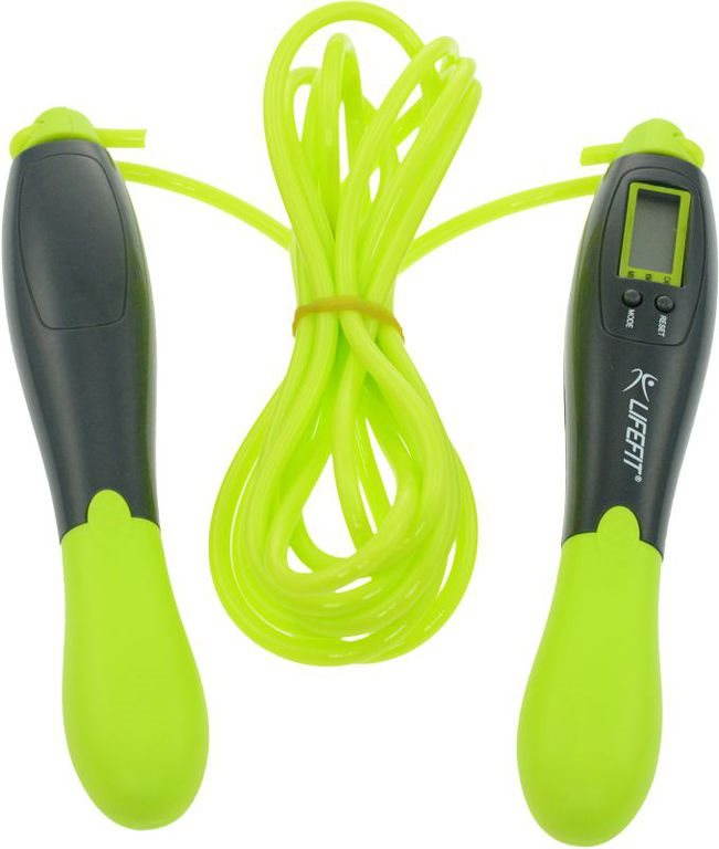 Švihadlo – rýchlostné, s počítadlom kalórií, dĺžka 280 cm, materiál držadla plast, zelená farba Švihadlo Lifefit Digital Rope zelenej farby je rýchlostnou pomôckou pre preskoky so vstavaným počítadlom, ktoré sleduje váš výkon počas tréningu. S dĺžkou 280 cm a ľahkými plastovými rukoväťami sa hod