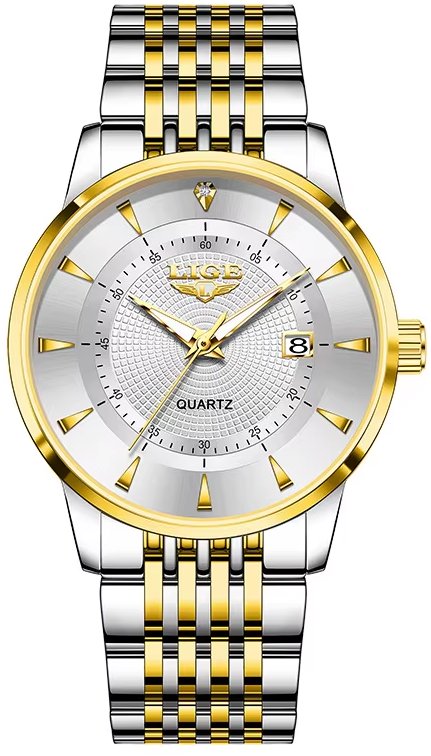 Hodinky dámske – analógové zobrazenie času, strojček quartz, okrúhly ciferník, 12/24-hodinový formát a dátum, elegantné, bez číslovania, minerálne sklíčko, vodotesnosť 30 m (3 ATM), materiál puzdra oceľ, zlatá farba puzdra, materiál remienka oceľ, strieborná farba remienka, na maximálny obvod zápästia 24 cm LIGE Sapphire, strieborné sú prepracované dámske hodinky, ktoré zaujmú prepojením štýlu a funkčnosti. Takzvané Quartz riešenie strojčeka je zárukou ako vysokej presnosti, tak naozaj dlhej výdrže batér