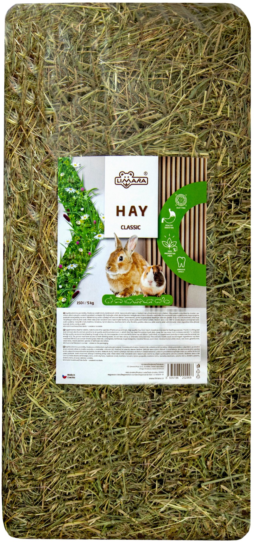 Krmivo pre hlodavce – seno, určené pre činčilu, králika, morča a trpasličieho králika, pre jedince bez obmedzenia veku, na trávenie a zažívanie a regulácia rastu zubov, hmotnosť 5 kg Kvalitné lúčne seno z českých lúk, vhodné ako súčasť primárneho krmiva pre králiky alebo ako doplnkové krmivo pre morčatá, činčily a ďalšie bylinožravé hlodavce. Vyznačuje sa vysokou chutnosťou, priro