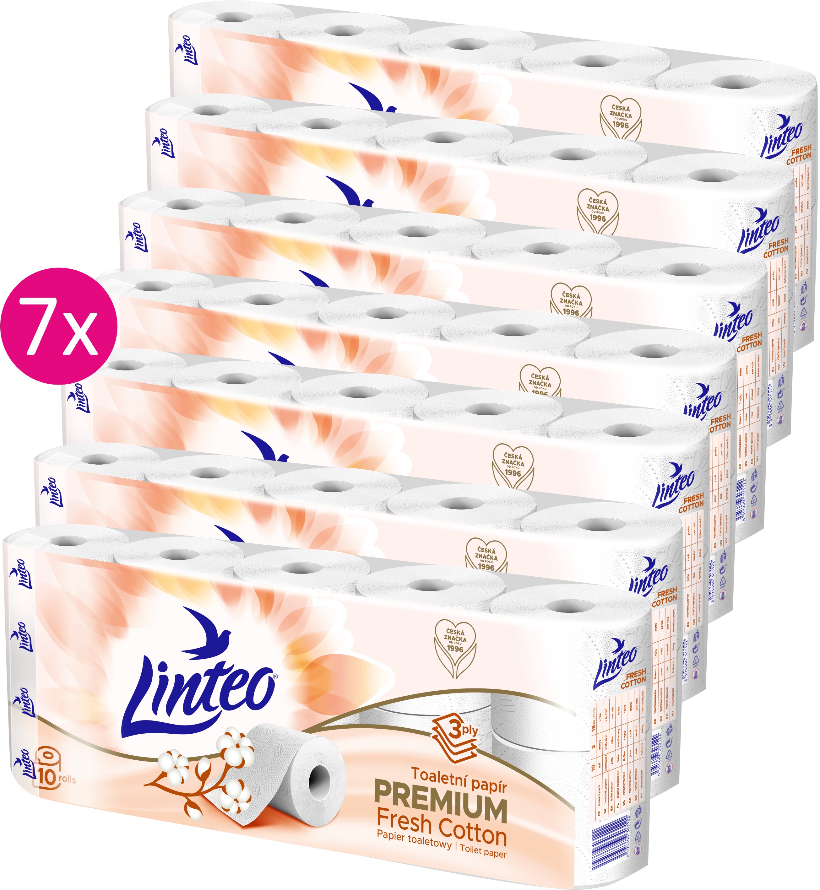 Toaletný papier – trojvrstvový, s parfumovaním, 100 % celulóza, 9100 útržkov s rozmermi 11,5 × 9,6 cm, 70 roliek s dĺžkou 15 m, celková dĺžka roliek 1050 m Biely toaletný papier LINTEO s dĺžkou kotúča 15 m a so 130 útržkami má bavlníkovú parfumáciu. Trojvrstvový toaletný papier je vyrobený zo 100 % celulózy. Je mäkký, pevný a jemný. Vďaka tomu poskytuje