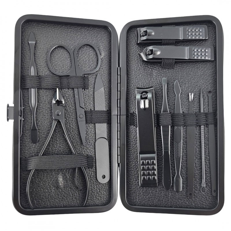 Sada na manikúru – 12 nástrojov, materiál nástrojov oceľ, čierna farba puzdra, materiál puzdra umelá koža, rozmery puzdra 12,5 × 8 cm (V׊) Zásadné vlastnosti produktu Livefy Mani Care 12 ks, čierna Praktická sada na domácu manikúru V krásnom puzdre Materiál puzdra: umelá koža Vnútri nájdete 12 nástrojovV sade na manikúru LIVEFY sa nachád