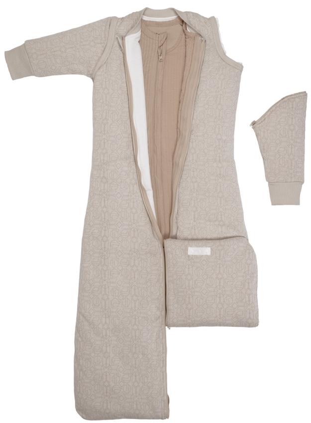 Spací vak pre bábätko – celoročná sezóna, rastúci, rukávy a chránič brady súčasťou, zapínanie na dvojcestný zips spredu, materiál bavlna, vhodný do práčky a priedušný, dvojvrstvový, stupeň výhrevnosti 3,5, béžová farba, dĺžka 98 cm Celoročný spací vak Lodger 4 Season ponúka celoročné pohodlie s hodnotou TOG 3,5. Inovatívny dizajn sa skladá z dvoch samostatných detských spacích vakov: letného spacieho vaku s nízkou hmotnosťou 0,3