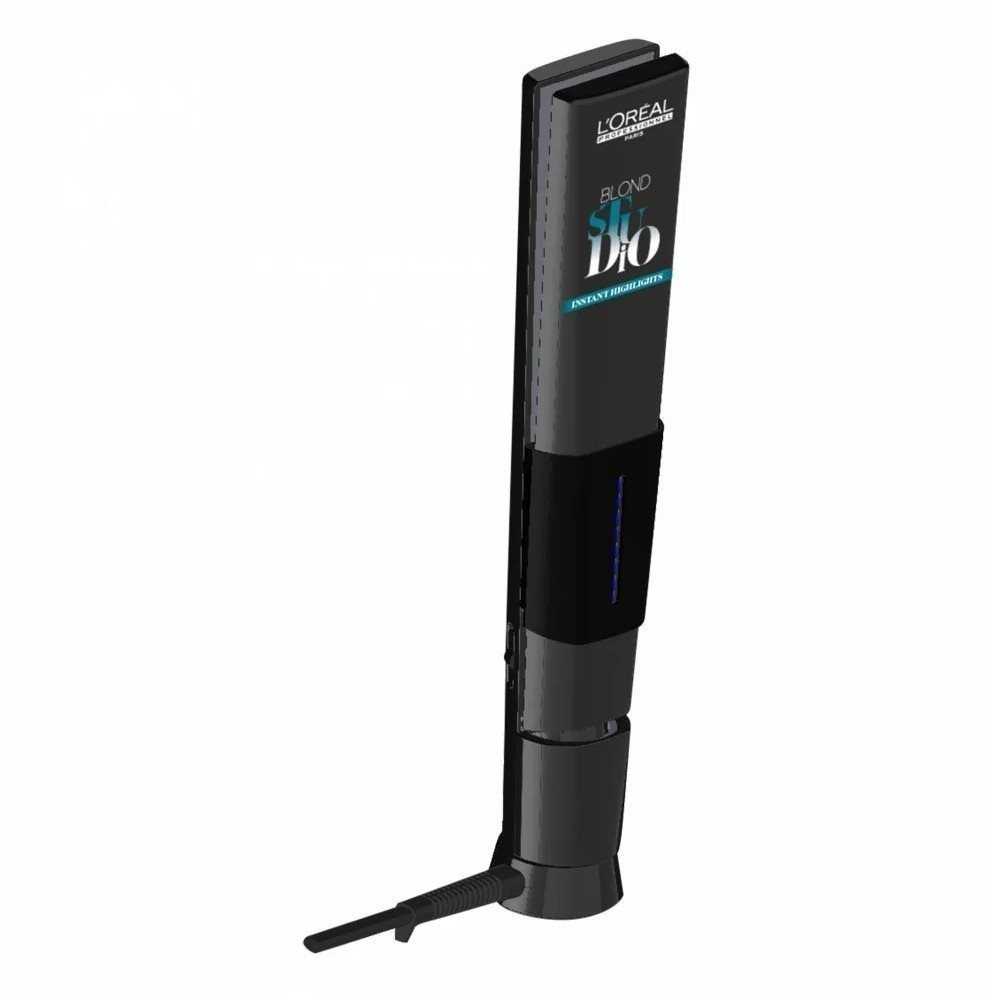 Žehlička na vlasy – maximálna teplota 140 °C, automatické vypnutie, svetelná signalizácia, bez displeja, príkon 25 W, dĺžka prívodného kábla 2,7 m, čierna farba, bezpečnostný zámok, sieťové napájanie Melírovacia žehlička L‘ Oreal Blond Studio Instant Highlights Tool predstavuje nový expresný systém na okamžité zosvetlenie vlasov. Systém zahŕňa žehličku na vlasy, zosvetľujúci krém s nevyhnutným vyv