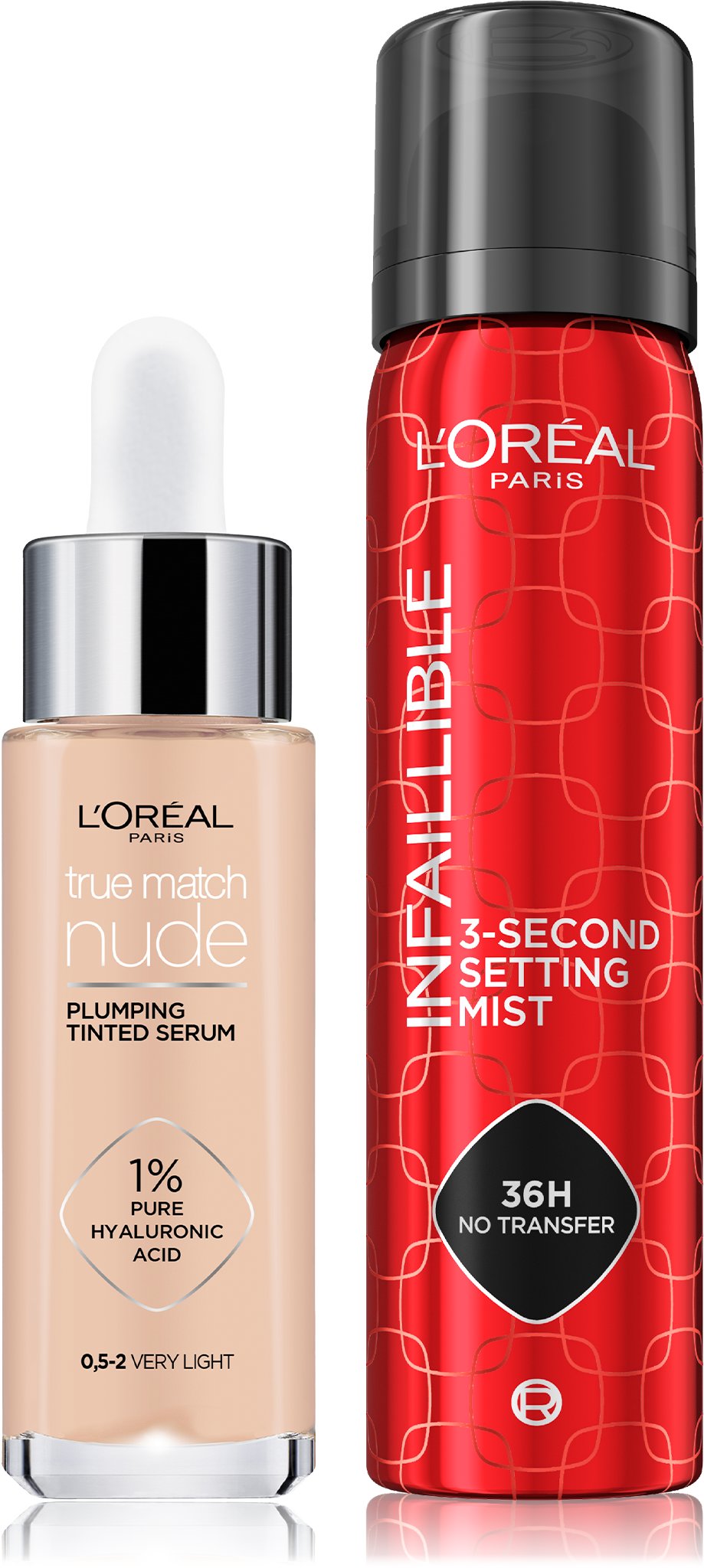 Kozmetická sada – obsahuje: Fixačný sprej na make-up 75 ml, Make-up 0,5-2 Very Light 30 ml Kozmetická sada L‘ ORÉAL PARIS Infaillible, True Match Set obsahuje ľahké tonizujúce sérum L‘ ORÉAL PARIS True Match Tinted Serum, ktoré prirodzene zjednotí pokožku a dodá jej matnejší vzhľad,