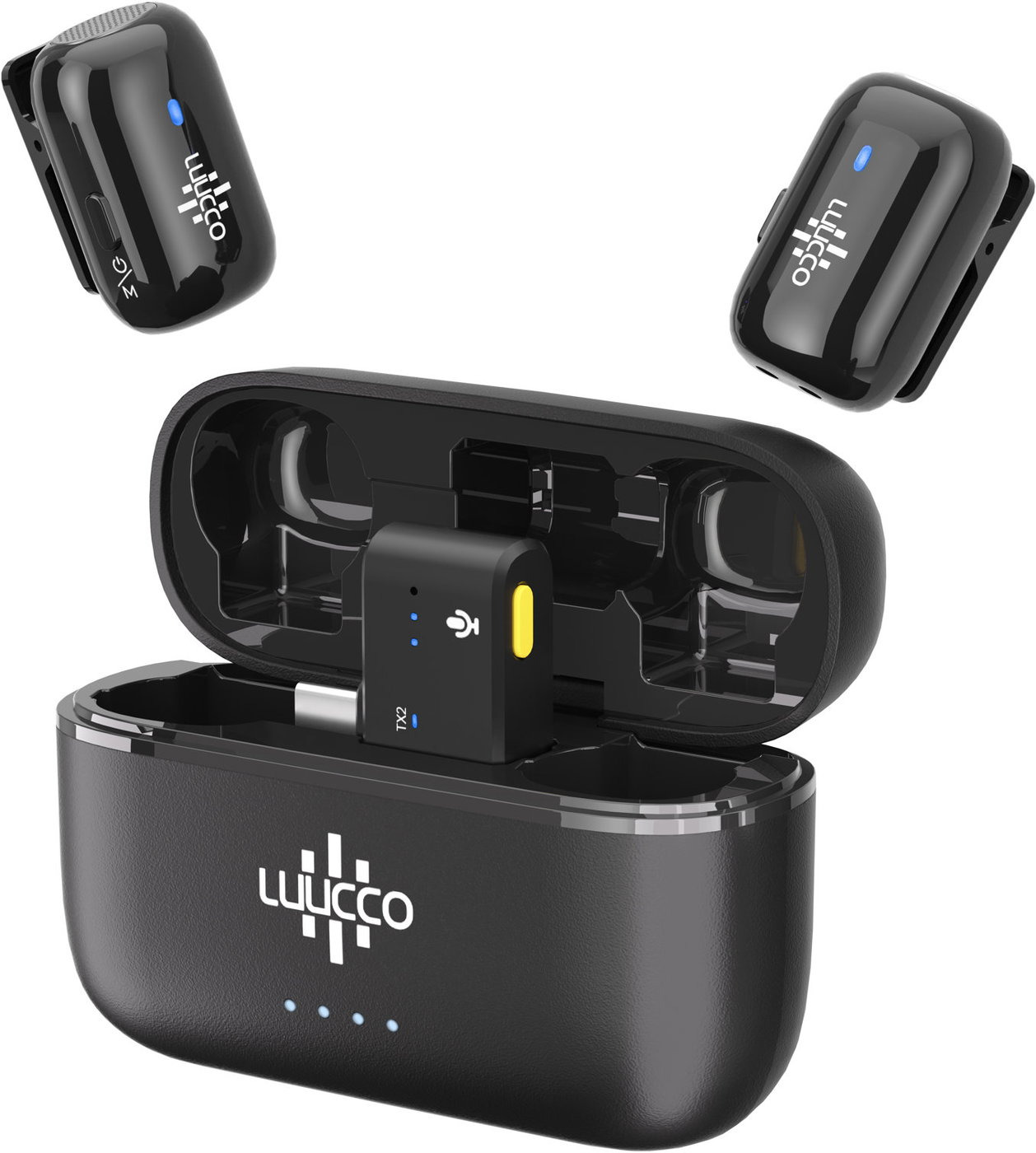 Bezdrôtový systém – mikrofón – bezdrôtový klopový, duálny (2× mikrofón), vhodný pre mobil a video tvorbu, všesmerové snímanie, frekvencia 20 – 20 000 Hz, prenos 2,4 GHz, dosah až 100 m, latencia < 20 ms, USB-C prijímač, nabíjacie puzdro, čierny