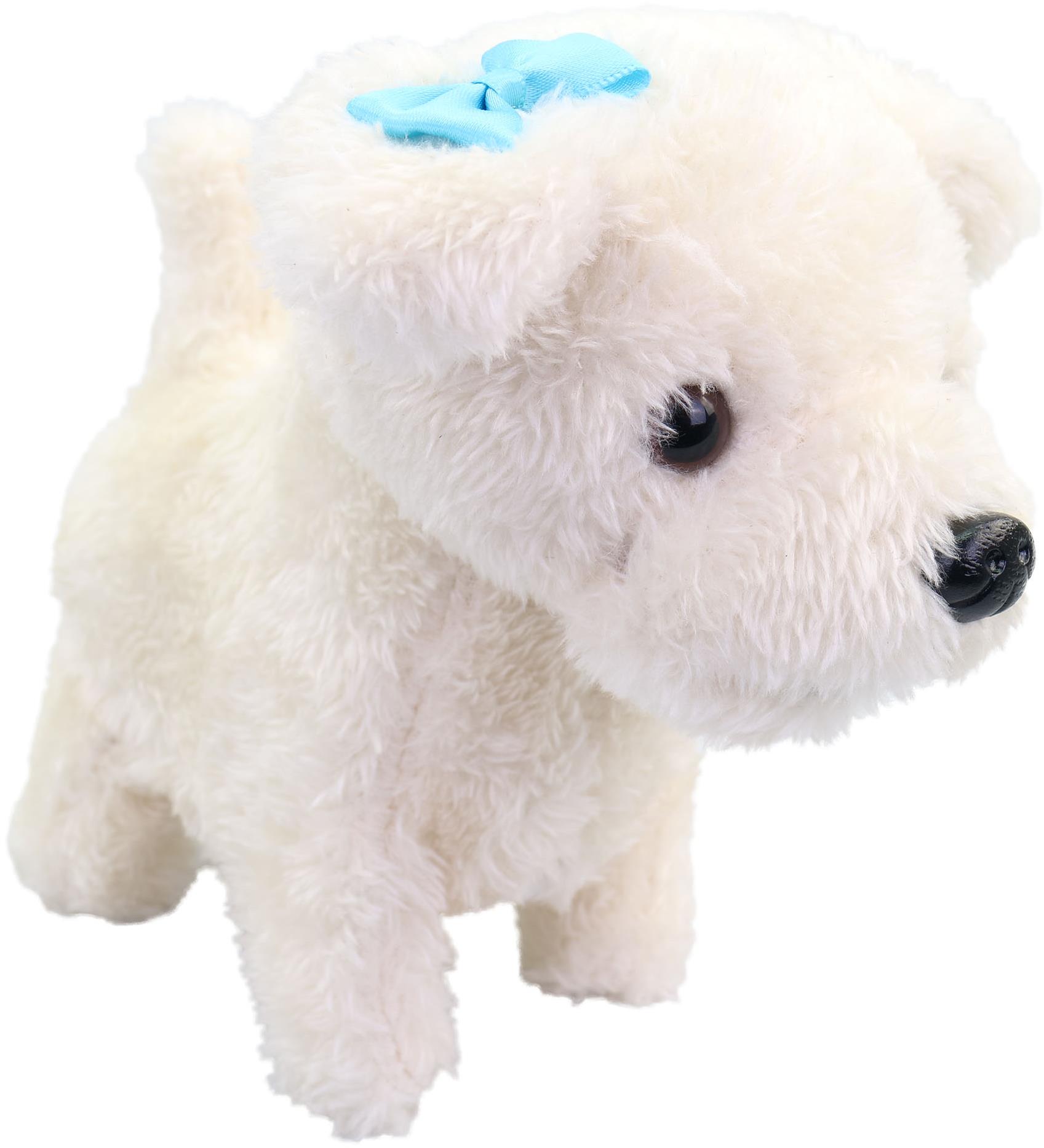 Plyšová hračka – pes, pohybujúca sa a zvukové efekty, s výškou 15 cm, vhodná pre deti od 3 rokov, na 2 AA batérie (nie sú súčasťou balenia) Plyšový psík Ma. De s modrou mašľou reaguje na…