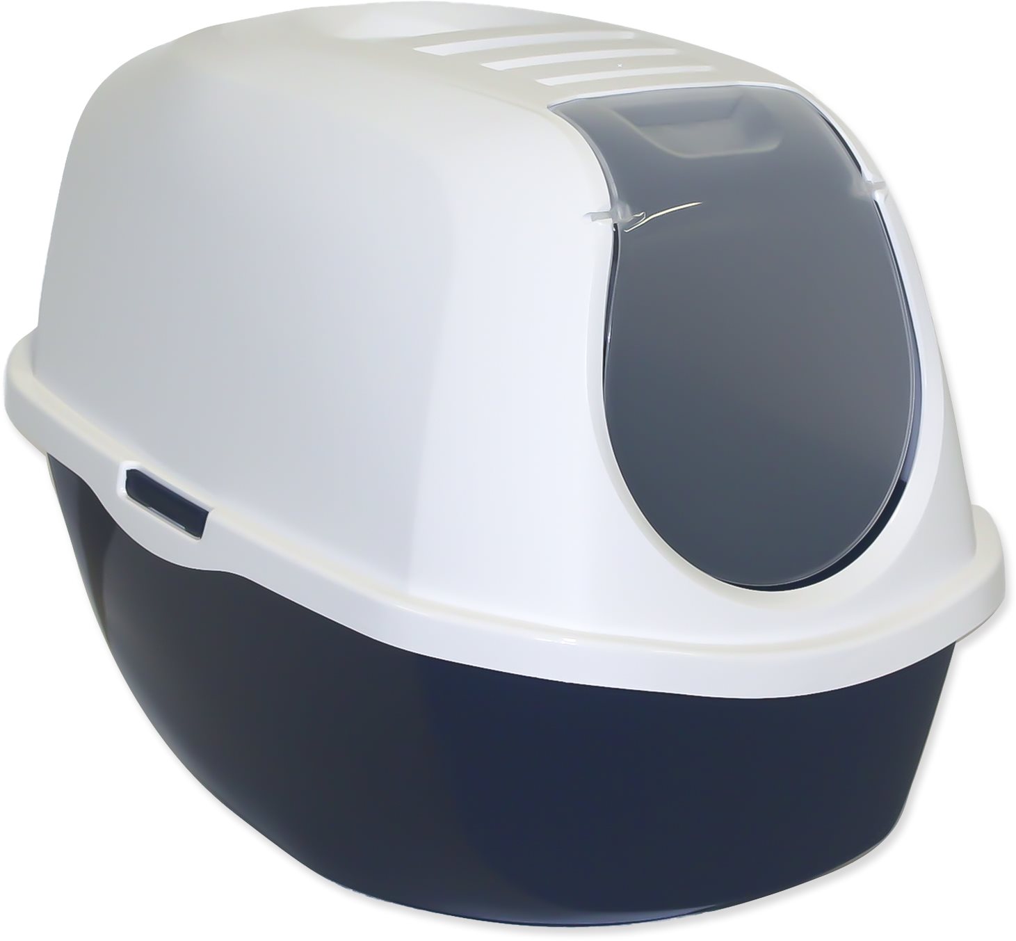 Mačací záchod – krytý, pre malé aj veľké mačky, obdĺžnikový tvar, priehradka na podstielku, dvierka, odnímateľné veko a rukoväť, filter v balení, rozmery 41 × 39 × 53 cm (V׊×H), biela farba Toaleta pre mačky s plastovým krytom, dvierkami a filtrom. Veľkosť53 x 39 x 41 cm