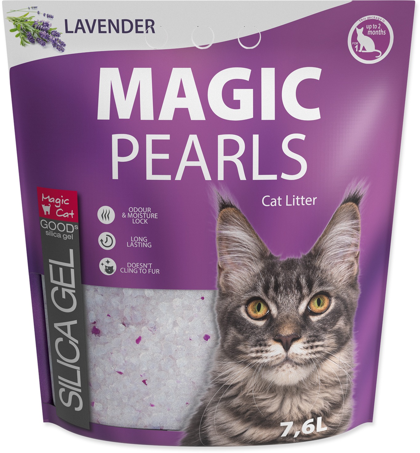 Podstielka pre mačky – silikátová, bezprašná a s vôňou, 3 kg/7,6 l Kočkolit MAGIC PEARLS okamžite absorbuje moč v mačacej toalete a pritom zostane na dotyk suchý. Zápach iba nezachytáva, ale úplne ho eliminuje a súčasne ničí baktérie. Efektívne pohltí pachy a drží ic
