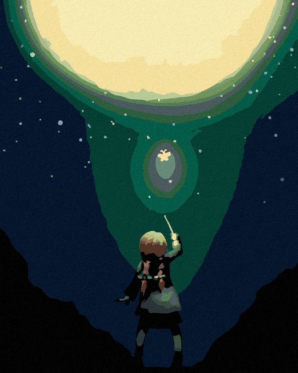 Maľovanie podľa čísel – tematika krajina a príroda, veľmi ľahká náročnosť, plátno, súprava štetcov, farby a vymaľovaný vzor súčasťou balenia, s rámom a s napnutím plátna, rozmery 50 × 40 cm (V׊) Kľúčové vlastnosti maľovania podľa čísiel Magický motýlik a mesiac, 40×50 cm, vypnuté plátno na rám Maľovanie podľa čísel očarí všetkých tvorivých jedincov Materiálom plátna je drevo a ľan Rozmery maľ