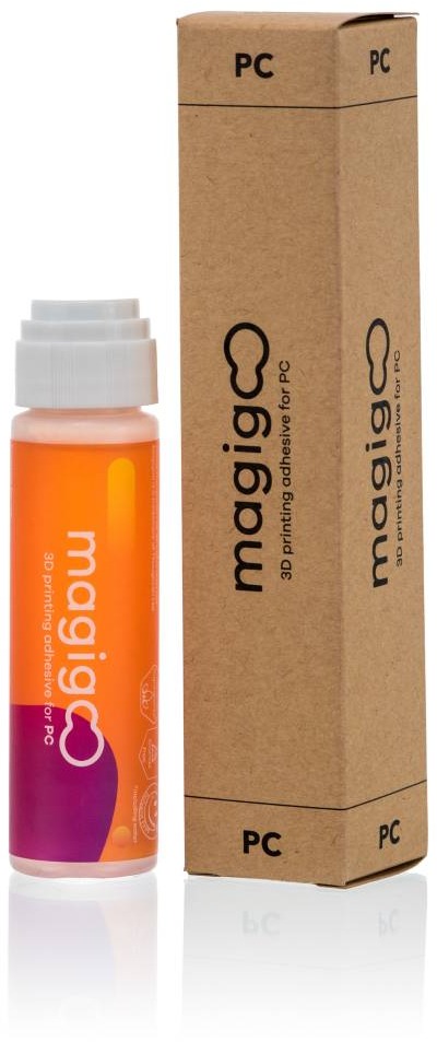 Príslušenstvo pre 3D tlačiarne – ideálne pre materiály: PC/ABS, ABS-T, ABS. MAGIGOO je ľahko použiteľné tekuté „lepidlo“ na zvýšenie priľnavosti prvej vrstvy pri tlači. Dobrá priľnavosť prvej vrstvy je dôležitá, pretože táto vrstva tvorí základ celej tlače. MAGIGOO je rozpustné vo vode, preto ho po tlači ľahko odstránite. Po každej tlači odporúčame lepidlo odstrániť pomocou navlhčenej handričky, tým sa zamedzí nadbytočnému nahromadeniu lepidla MAGIGOO na tlačovej ploche.