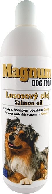 Olej pre psa – na srsť a kožu, proti zápalom a na obdobie gravidity a dojčenia, pre všetky plemená bez obmedzenia veku, objem 1000 ml Lososový olej pre psov Magnum je čistý 100 % lososový olej, ktorý obohatí stravu dospelých psov všetkých plemien o cennej Omega-3 mastnej kyseliny. Tie prispievajú k pružnej a zdravo vyzerajúcej srsti