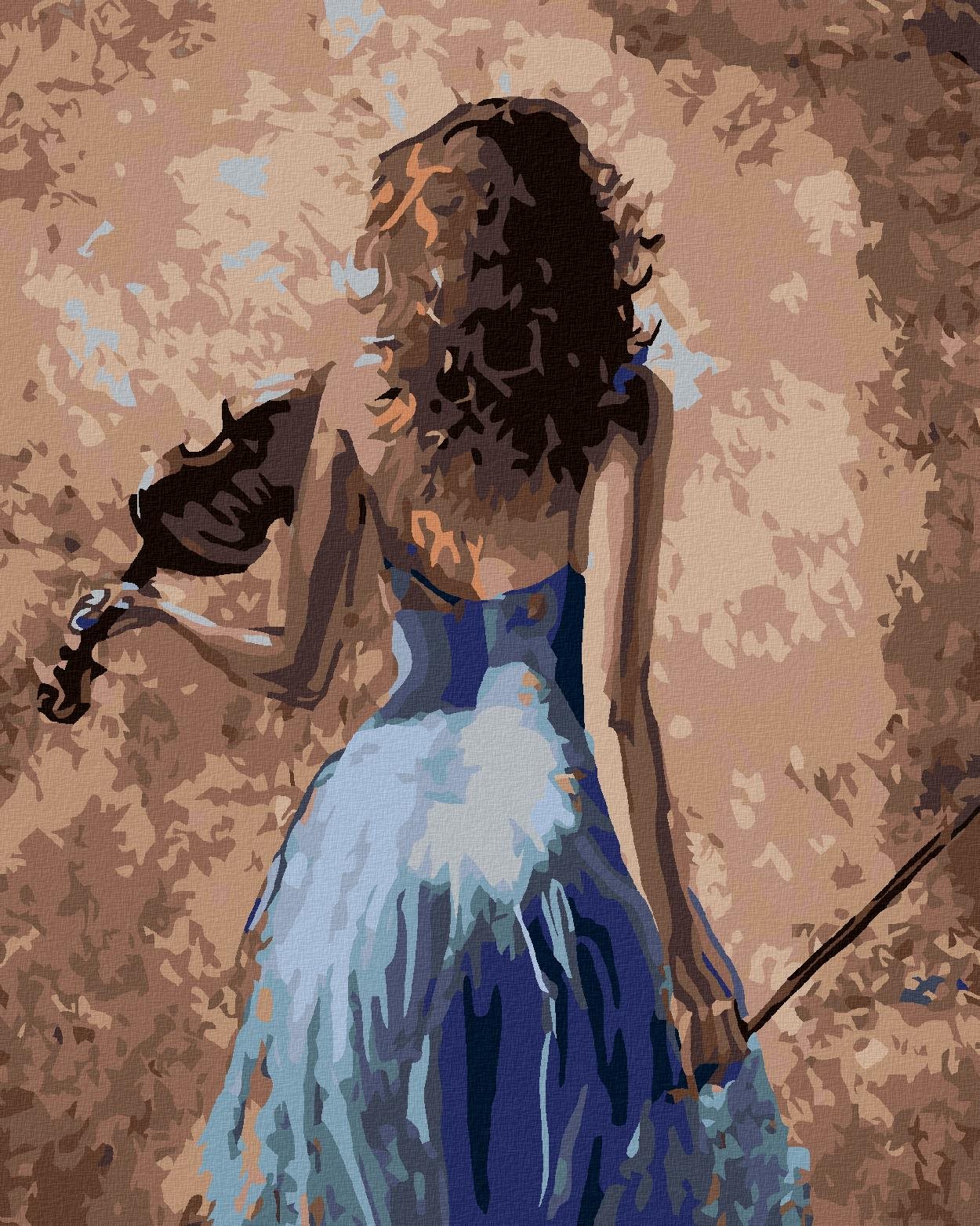 Maľovanie podľa čísel – Huslistka v modrých šatách, 80 × 100 cm, napnuté plátno na rám