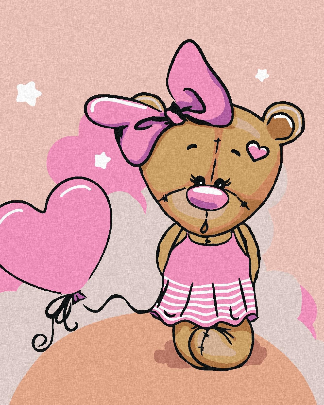 Maľovanie podľa čísel – Malý medveď s mašľou, 80 × 100 cm, napnuté plátno na rám