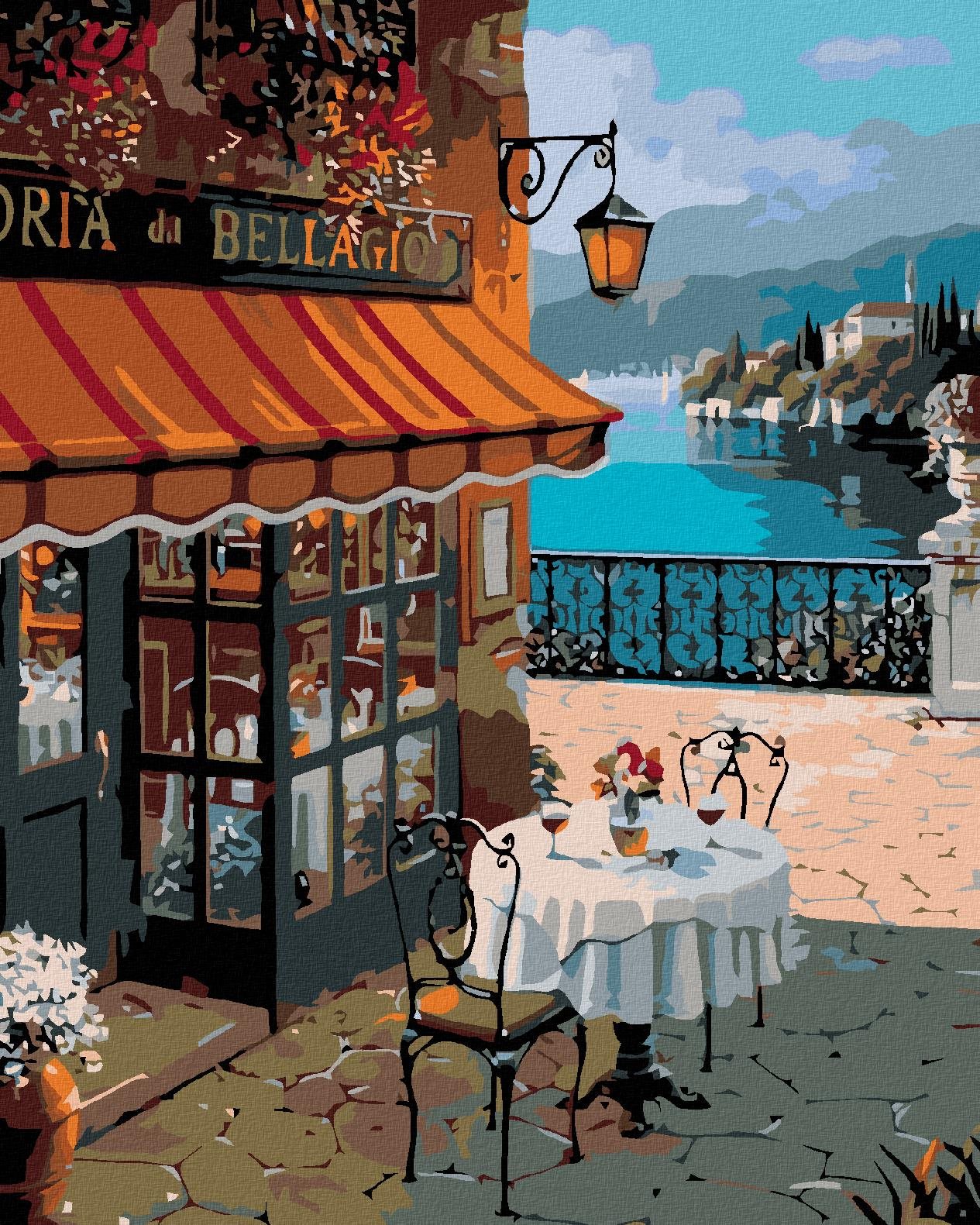 Maľovanie podľa čísel – tematika mestá a miesta, romantika, plátno, súprava štetcov, farby a vymaľovaný vzor súčasťou balenia, s rámom a s napnutím plátna, rozmery 50 × 40 cm (V׊) Kľúčové vlastnosti maľovania podľa čísel Maľovanie podľa čísel – Romantické posedenie, 40 × 50 cm, vypnuté plátno na rám Maľovanie podľa čísiel je vhodné pre všetkých tvorivých ľudí Materiálom plátna