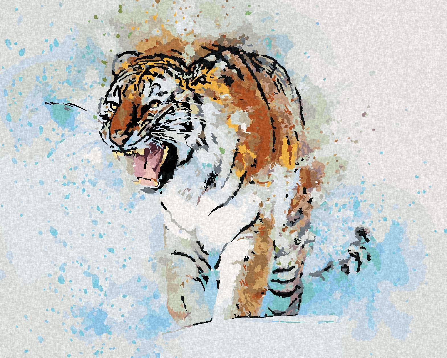 Maľovanie podľa čísel – tematika zvieratá, stredná náročnosť, plátno, súprava štetcov, farby a vymaľovaný vzor súčasťou balenia, rozmery 100 × 80 cm (V׊) Kľúčové vlastnosti maľovania podľa čísiel Maľovaný tiger, 80 × 100 cm, bez rámu a bez napnutia plátna Maľovanie podľa čísiel očarí všetkých tvorivých jedincov Materiálom plátna je ľan Rozmery maľovani