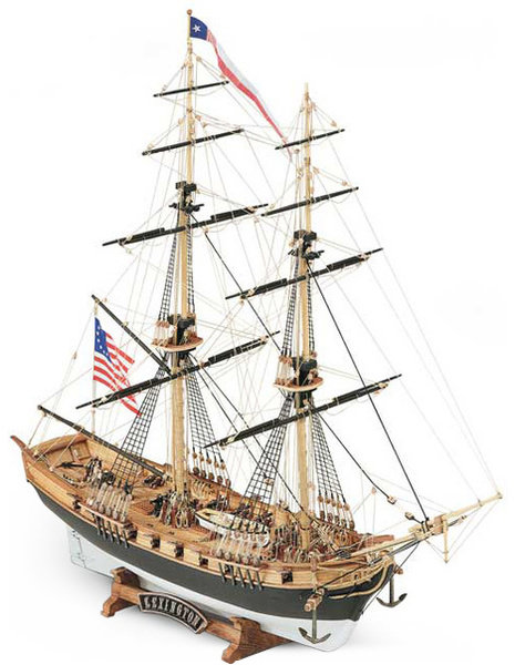 Drevený model – stavebnice stolního modelu historické lodě Mamoli Lexington 1775, měřítko 1:100, americká válečná šalupa z války za nezávislost, laserem řezané díly, kovové detaily, plachty nejsou součástí balení Stavebnice neplovoucího modelu MAMOLI Lexington představuje detailní zpracování válečné lodě z roku 1775, která byla přestavěna během války proti Anglii ve Philadelphii. Model je vyhotoven v měřítku 1
