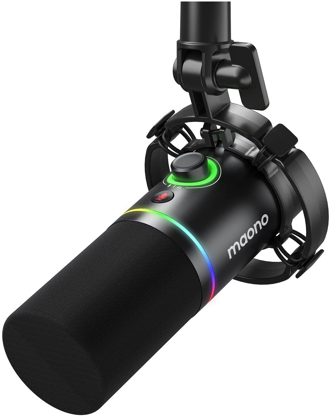 Mikrofón – na statív (so závitom), vhodný na PC, stream, podcast, hernú komunikáciu, dĺžka kábla 2,5 m, dynamický, smerové snímanie, frekvencia od 40 do 16000 Hz, tlačidlo Mute, ovládač Gain a ovládač Volume, slúchadlový výstup a RGB podsvietenie, odpružený držiak (pavúk) v balení Mikrofón MAONO PD200XKondenzátorový USB mikrofón MAONO PD200X perfektne poslúži na nahrávanie, streamovanie, ale aj na hranie hier. Externý mikrofón eliminuje okolité zvuky a uvedie do popredia hlas.