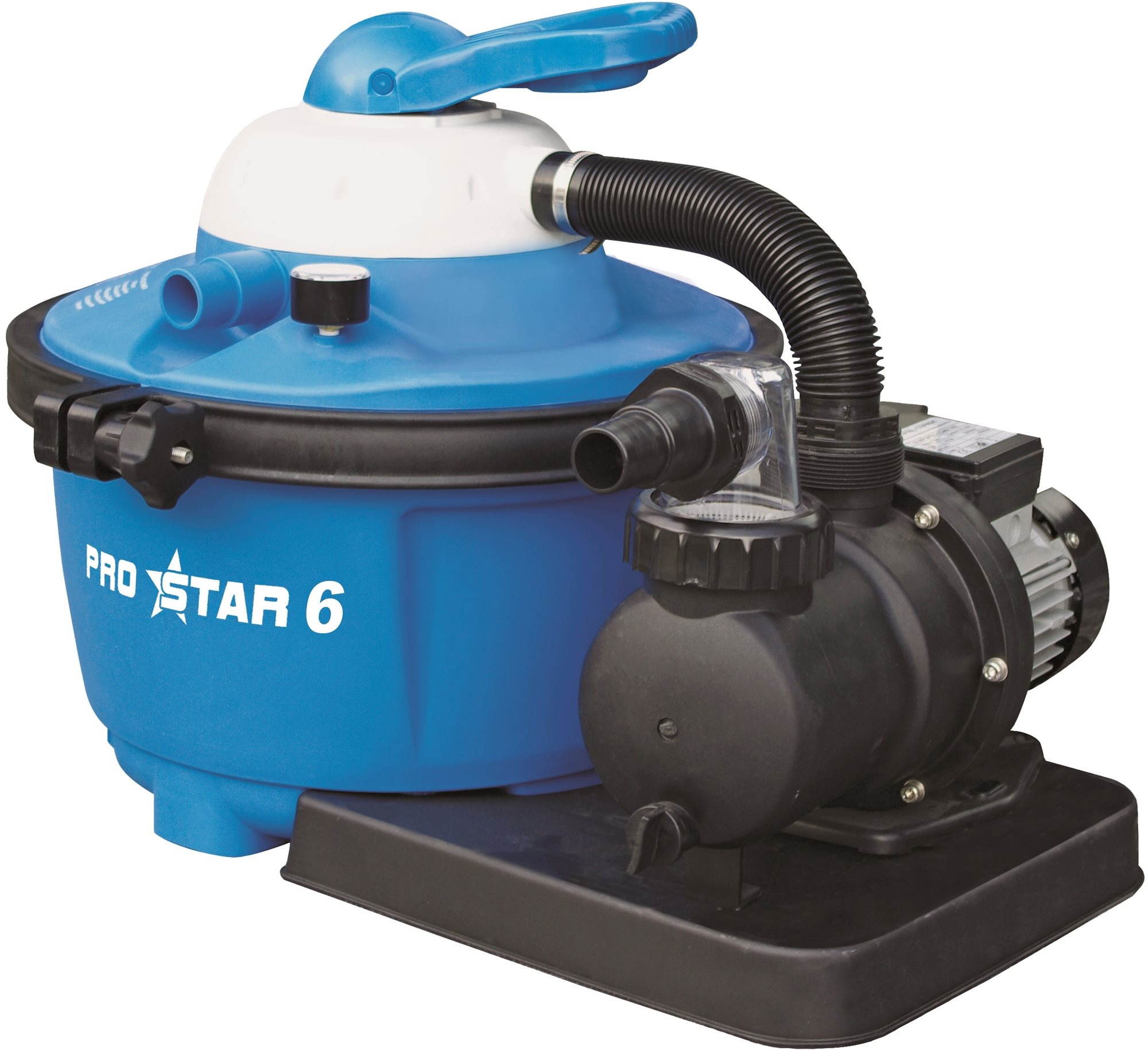 Piesková filtrácia – do objemu 30 m³, prietok vody 6 m³/h, na hadice s priemerom 32 mm a 38 mm, 6-cestný ventil, kompatibilná s solinátorom, hmotnosť pieskovej náplne 16 kg, príkon 450 W, rozmery 45 × 50 × 60 cm (V׊×H), hmotnosť 14 kg Piesková filtrácia ProStar 6 sa vo svojom princípe inšpirovala prírodou – tu sa tiež dažďová voda mení na krištáľovo čistú pramenitú vodu vďaka filtrácii v priepustných vrstvách horniny. V pieskovej f