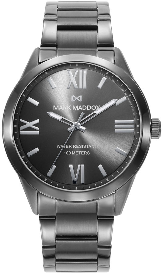 Hodinky pánske – analógové zobrazenie času, strojček quartz, okrúhly ciferník, 12/24-hodinový formát a luminiscenčné prvky, elegantné, rímske indexy, minerálne sklíčko, vodotesnosť 100 m (10 ATM), materiál puzdra oceľ, sivá farba puzdra, materiál remienka oceľ, sivá farba remienka, s vymeniteľným remienkom MARK MADDOX Marais HM1007-13 sú nadčasové pánske hodinky, na ktoré sa môžete vždy spoľahnúť. Tvorí ich okrúhly ciferník široký 43 mm. Strojček Quartz je prísľubom vysokej životnosti batérie a presnos