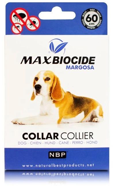 Antiparazitný obojok – pre stredné psy, účinnosť: blchy, kliešte a komáre, s repelentným účinkom, vodoodolné, veľkosť obojka 60 cm Antiparazitný obojok Max Biocide Margosa pre psov s dĺžkou 60 cm zaisťuje dlhodobú ochranu proti blchám, kliešťom a komárom u stredne veľkých psov. Účinok vychádza z prírodného extraktu z margosy, kto