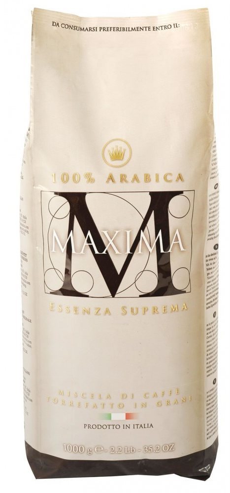 Káva – zrnková, 100 % Arabica, zmes rôzneho pôvodu, miesto praženia Taliansko, hmotnosť balenia 1000 g, 140 porcií Káva Maxima svojou pútavou chuťou a vôňou poteší každého, kto si bez horúcej šálky nevie predstaviť deň. Ide o 100% Arabiku s vyrovnanou chuťou a vôňou. Bola zmiešaná z niekoľkých krajín pôvodu. Kraji