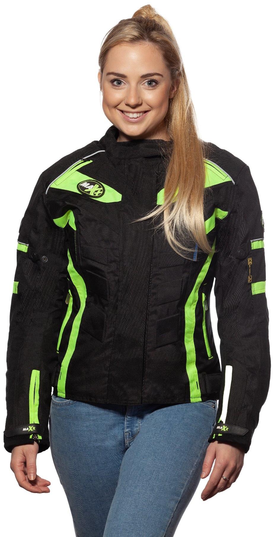 Motorkárska bunda – dámska, celoročná, veľkosť M, čierna a zelená farba Bunda na motorku MAXX je nevyhnutnou súčasťou motoristického outfitu, ktorú ocení každý vodič motocykla. Dámska moto bunda chráni pred nepriaznivým počasím, ale zvyšuje ochranu aj v prípade nehody. Bu