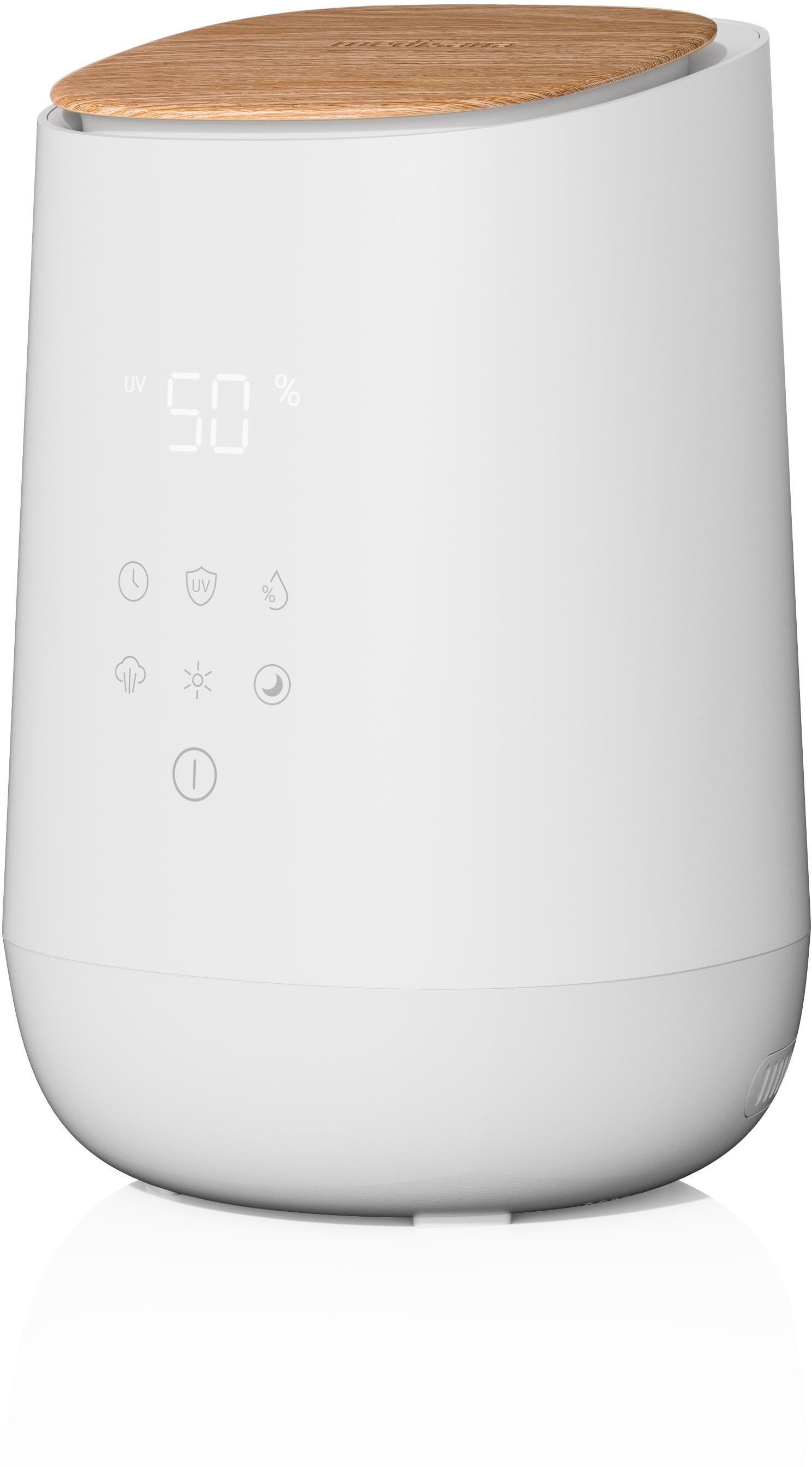 Zvlhčovač vzduchu – vhodný do miestnosti s veľkosťou 30 m², ultrazvukový, príkon 24 W, zvlhčovací výkon 300 ml/hod., objem nádržky 2,6 l, časovač, udržovanie vlhkosti, podsvietenie, automatické vypnutie, aróma difuzér, tichý režim a nočný režim, rozmery 24,7 × 34,5 × 24,7 cm (Š×V×H), biela farba Zvlhčovač vzduchu Medisana AH 680 kombinuje tri funkcie v jednom zariadení: antibakteriálna vodná nádrž, wellness svetlo a aromatický oddiel pre komplexný wellness zážitok. Ultrazvuková technológia ef