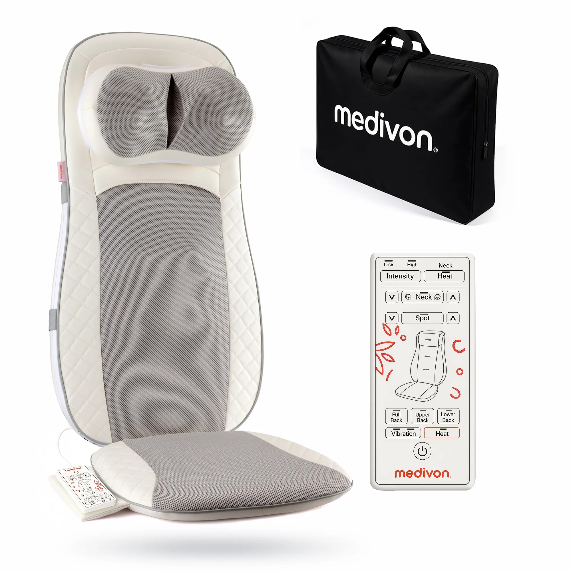 Masážny prístroj – na zadok a chrbát, aj na relaxáciu, podporu krvného obehu, bodová masáž, shiatsu masáž a vibračná masáž, 5 programov, možnosť automatického vypnutia, s časovačom, s vyhrievaním, nabíjačka súčasťou balenia, sieťové napájanie, biela farba, hmotnosť 6,5 kg, nevhodný pre deti Masážna podložka Medivon Luna sa postará o profesionálnu Shiatsu masáž v pohodlí domova. Zariadenie disponuje 8 masážnymi hlavicami, ktoré sa postarajú o intenzívnu a uvoľňujúcu masáž. Prostredníctvom