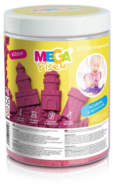 Kinetický piesok – hmotnosť 1000 g, ružová farba, vhodný pre deti od 3 rokov Snažíte sa nájsť spôsob, ako zabaviť svoje deti, keď práve nemôžu pobehovať vonku? Potom stavte na kinetický piesok Megamánie, ktorý nielen rozvíja fantáziu a kreativitu detí, ale precvičuje aj jemnú