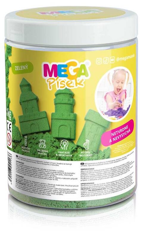 Kinetický piesok – hmotnosť 1000 g, zelená farba, vhodný pre deti od 3 rokov Snažíte sa nájsť spôsob, ako zabaviť svoje deti, keď práve nemôžu pobehovať vonku? V tom prípade sa ako ideálna voľba javí kinetický piesok Megamánie, ktorý nielen stimuluje fantáziu a kreativitu detí