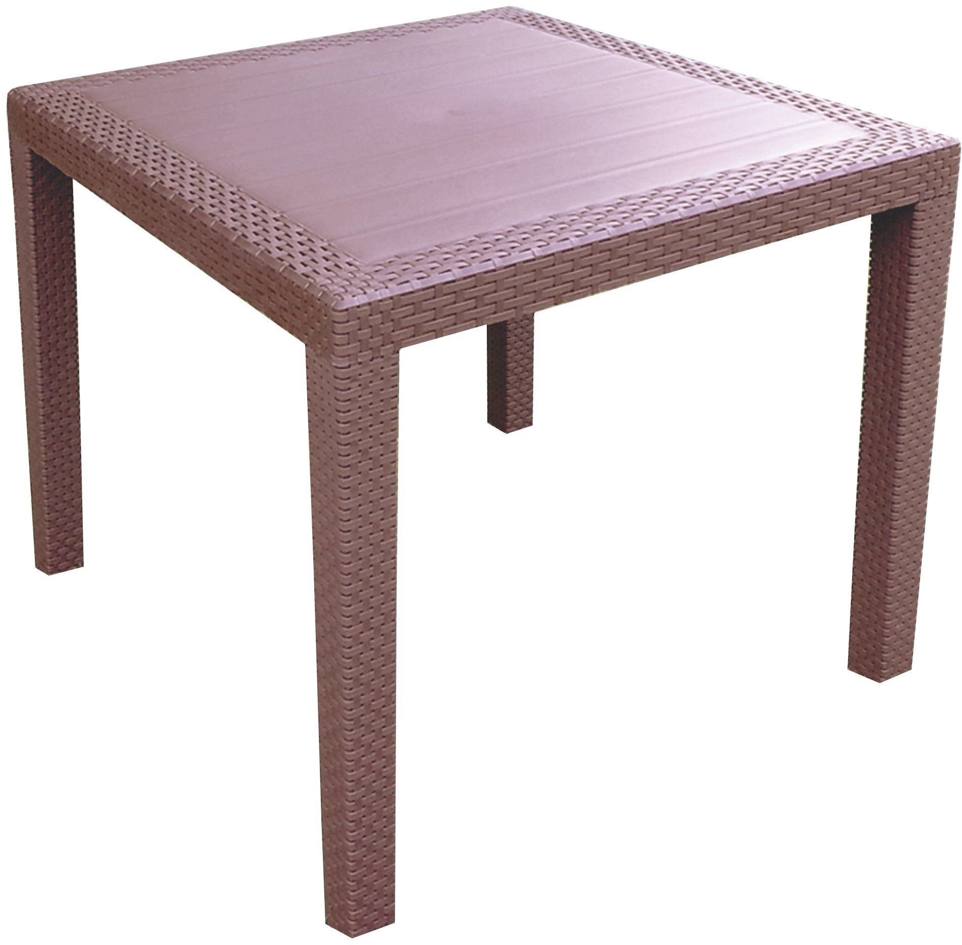 Záhradný stôl – materiál konštrukcie umelý ratan, materiál dosky plast, tvar štvorec, rozmery 75,5 × 75,5 × 73 cm (D׊×V) Záhradný stôl MEGA PLAST RATAN LUX má veľmi moderný atraktívny vzhľad imitácie ratanu. Nohy stola sú výškovo nastaviteľné, čím umožňujú jeho vyrovnanie na nerovnom teréne. Stôl je určený nielen do int