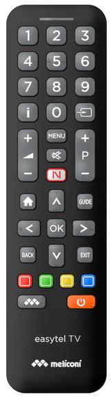 Diaľkový ovládač na TV – univerzálny, infračervený prenos, klávesnica a ovládanie smart TV, na 2 AAA batérie Kľúčové vlastnosti diaľkového ovládania Meliconi EASYTEL TV UniverzálnyUniverzálny diaľkový ovládač pre 1 TVPredprogramované infračervené diaľkové ovládaniePripravené na použitie za 4 s, nevyžaduje ži