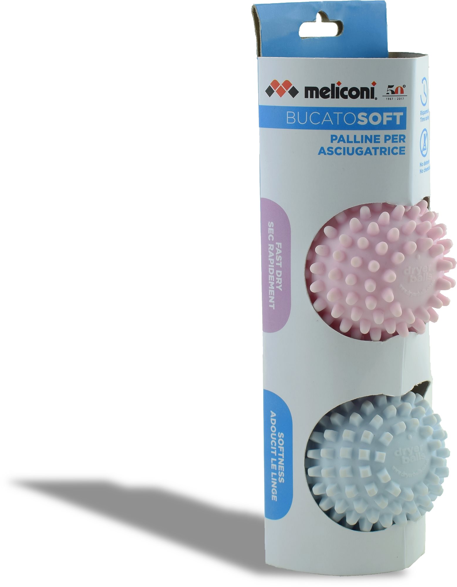 Loptičky do sušičky bielizne – guma, povrch s výstupkami, priemer loptičky 60 mm, 2 ks v balení, produkt skracuje dobu sušenia a zmäkčuje bielizeň, vhodné pre citlivú pokožku, Doprajte si krásne nadýchanú bielizeňPoužívaním loptičiek do sušičky Meliconi 656153 docielite krásne nadýchanú bielizeň. Precízne spracovaný povrch loptičky sa pri pohyboch bubna postará o prirodzené