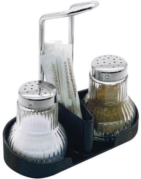 Menážka – 3 kusy v súprave s dávkovacími zásobníkmi na soľ, na čierne korenie a na špáradlá, materiál sklo, plast a nerez, výška 150 mm V domácnosti by nemala pri stolovaní chýbať pekná menážka. Je možné vyžiť ju okrem dekoračného účelu aj prakticky. Vďaka rozmerom a usporiadaniu bude poruke vždy, keď je to potrebné. Súpravu tvorí men