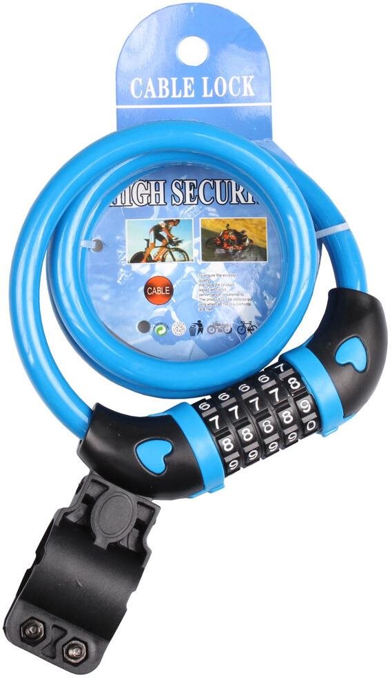 Zámok na bicykel – lankový, zamykanie na kód, dĺžka 1200 mm, odolný voči korózii, vhodný pre elektrobicykle, umiestnenie na rám, držiak na rám súčasťou balenia, hmotnosť 320 g Kľúčové vlastnosti zámku na bicykel Merco Digit 1.0 modrý Lankový zámok na bicykel Merco je ľahký a jednoducho prenosný Umožní vám spoľahlivo zabezpečiť elektrobicykel, bicykel, kolobežku a kočík S um