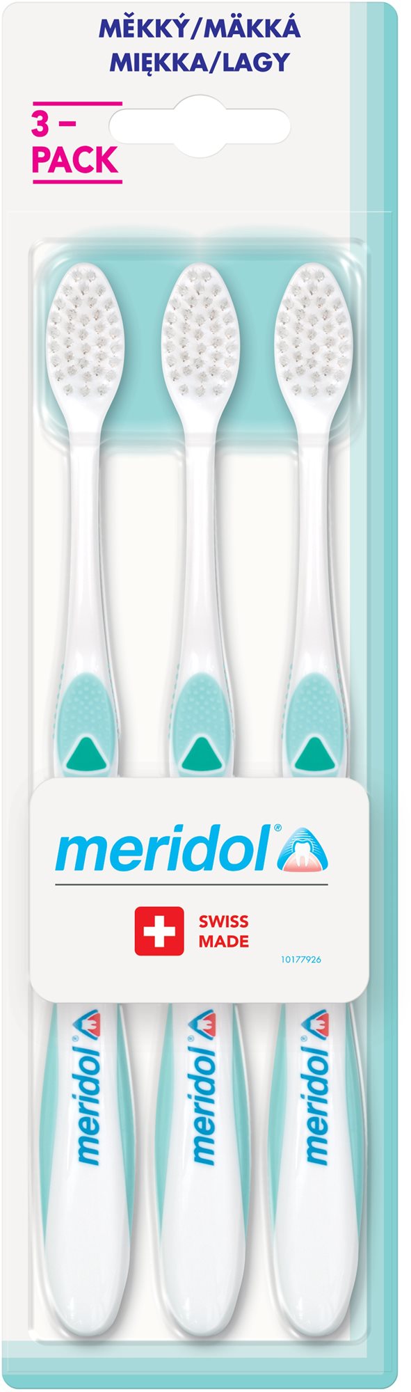 Zubná kefka – špeciálne vyvinutá na ideálnu starostlivosť nielen o zuby, ale aj ďasná Zubná kefka meridol® Soft šetrne a efektívne odstraňuje zubný povlak a čistí zuby. Mikrojemné konce vlákien podobné štetcu dôkladne odstraňujú zvyšky jedla a povlak z povrchu zubov až k línii ďasien.