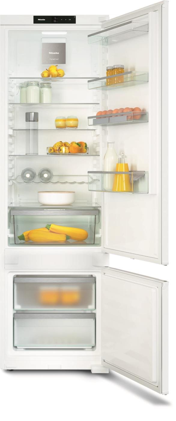 Vstavaná chladnička – s mrazničkou, energetická trieda D, objem chladničky 212 l, objem mrazničky 54 l, doprava, 5 políc, 2 priehradky v mrazničke, 3 chladiace okruhy, displej, LED osvetlenie, prázdninový režim, indikácia otvorených dverí chladničky a smart funkcie, rozmery 177 × 54,1 × 54,5 cm (V׊×H), čelný dekoratívny panel na dvierkach nie je súčasťou dodávky Vstavaná chladnička MIELE KF 7731 D kombinuje chladničku s mrazničkou. Náleží do energetickej triedy D, jej odhadovaná ročná spotreba je 158,8 kWh. Chladiaca časť disponuje objemom 212 l, zatiaľ čo mr