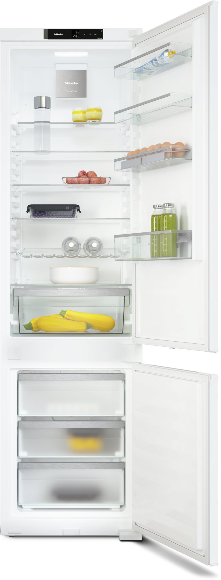 Vstavaná chladnička – s mrazničkou, energetická trieda D, objem chladničky 215 l, objem mrazničky 70 l, doprava, 5 políc, 3 priehradky v mrazničke, 3 chladiace okruhy, displej, LED osvetlenie, prázdninový režim, indikácia otvorených dverí chladničky a smart funkcie, rozmery 193,8 × 54,1 × 54,5 cm (V׊×H), čelný dekoratívny panel na dvierkach nie je súčasťou dodávky Vstavaná chladnička MIELE KFN 7833 DVstavaná chladnička MIELE KFN 7833 D s mrazničkou kombinuje špičkový dizajn s pokročilými technológiami na maximálnu čerstvosť potravín. MIELE K