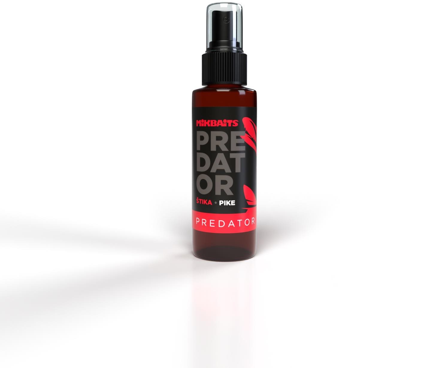 Dip v podobe spreja, príchuť: šťuka, hmotnosť balenia 30 g, aktivuje potravinový signál PREDATOR Spray je určený na postrek umelých (gumové nástrahy, ale aj strapce trblietok a woblerov atď.), mŕtvych (rybky) aj iných (pelety…) nástrah s účinnosťou na jednotlivé druhy rýb – Šťuka, Zubáč,