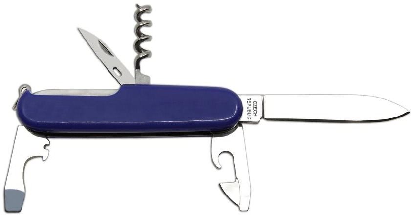 Vreckový nožík – multifunkčný, každodenný (EDC), vo výbave skrutkovač, otvárač na konzervy, otvárač na fľaše, vývrtka a priebojník, tvrdosť ocele 55 HRC, materiál rukoväti plast, dĺžka čepele 7 cm, dĺžka zavretého noža 9 cm, celková…