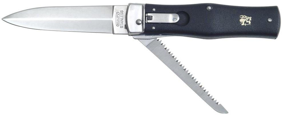 Vystreľovací nôž – možnosť otvárania jednou rukou, vo výbave pílka na drevo, tvrdosť ocele 55 HRC, materiál rukoväti plast, dĺžka čepele 9,5 cm, dĺžka zavretého noža 12,5 cm, celková dĺžka noža 22 cm, hmotnosť 248 g Nijako zvlášť sa vám neprenesie, váži248 g. Celková dĺžka noža je 12,5 cm. Nôž MIKOV zaujme kvalitou a odolnosťou, vďaka ktorej zostane dlho ostrý. Nôž MIKOV má hmotnosť 248 g
