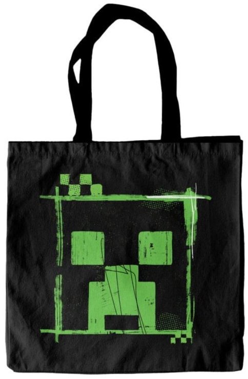 Nákupná taška – atraktívna, praktická, jednopriestorová, čierna, na rameno s grafikou postavy Creeper z videohry Minecraft, vhodná na nákupy pre všetkých menších aj väčších fanúšikov, rozmery tašky (š × v) 38 × 42 cm, materiál tašky 100% polyester Nákupná taška Minecraft: Creeper je plátená taška na rameno s oficiálnou licenciou obľúbenej postavičky sandboxovej hry. Nesie grafiku Creepera a je v čiernej farbe. Poslúži na nákupy, do mesta alebo