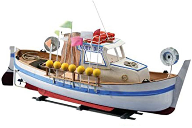 Drevený model – stavebnice stolního modelu historické lodě Mini Mamoli Moby Dick 1:35 je dřevěná modelářská stavebnice italské rybářské lodi typu Gozzo, délka modelu je 270 mm, výška 90 mm. Vhodná pro začátečníky od 14 let. Obsahuje předtvarovaný trup, dřevěné lišty, kovové díly, stojánek a podrobný návod v několika jazycích Řada Mini-Mamoli nabízí oblíbené statické modely lodí menších rozměrů (cca 35 cm), které si díky vyváženému poměru detailnosti a jednoduchosti stavby získaly oblibu zejména u začínajících modelářů. St