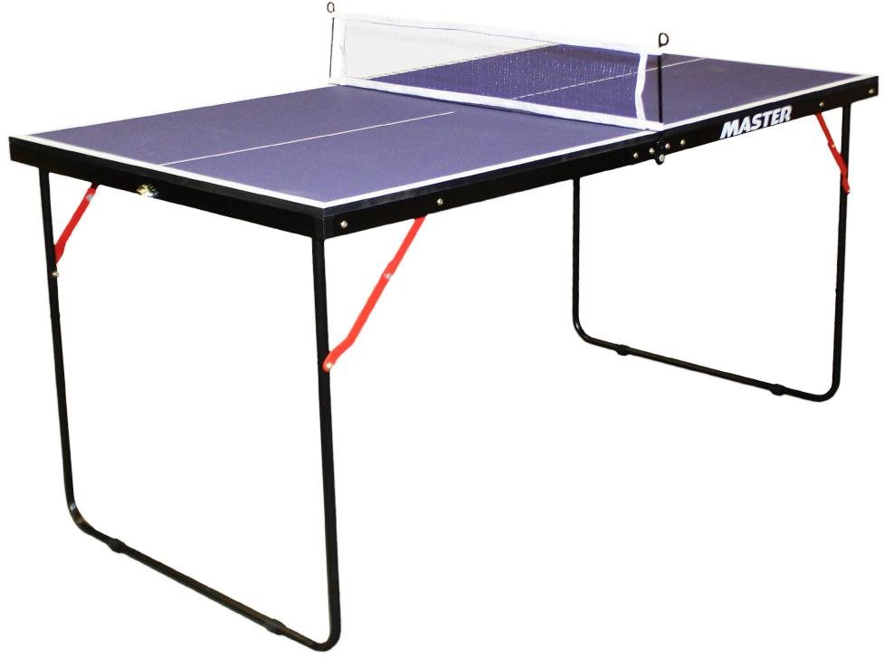 Pingpongový stôl vnútorný, rozmery 137 × 76 × 67 cm, hrúbka dosky 12 mm, hmotnosť 14 kg Mini stôl na stolný tenis MASTER Midi Table Fun – hrací stôl so sieťkou pre mini verziu stolného tenisu. Jednoduché zloženie a rozloženie stola. Súčasťou balenia sieťka, dve rakety a tri loptičky. Kľ