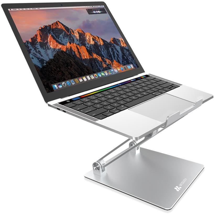 Stojan na notebook – polohovateľný, na stôl, na notebooky s maximálnou uhlopriečkou 17″, skladací, vetracie otvory a protišmyková úprava súčasťou, materiál kov, rozmery 200 × 280 × 235 mm (V׊×H), hmotnosť 1062 g, strieborná farba Chcete si dopriať väčší komfort pri používaní vášho notebooku alebo tabletu? Tak to budete potrebovať ľahko prenosný a ergonomický stojan MISURA ME09 portable. Vďaka svojmu ergonomickému tvaru je ideá